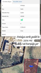 Antalya Serik Gedik’te 3504 m2 %45 Kat karşılığı yer