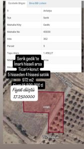 Serik Gedik’te İmarlı hisseli arsa